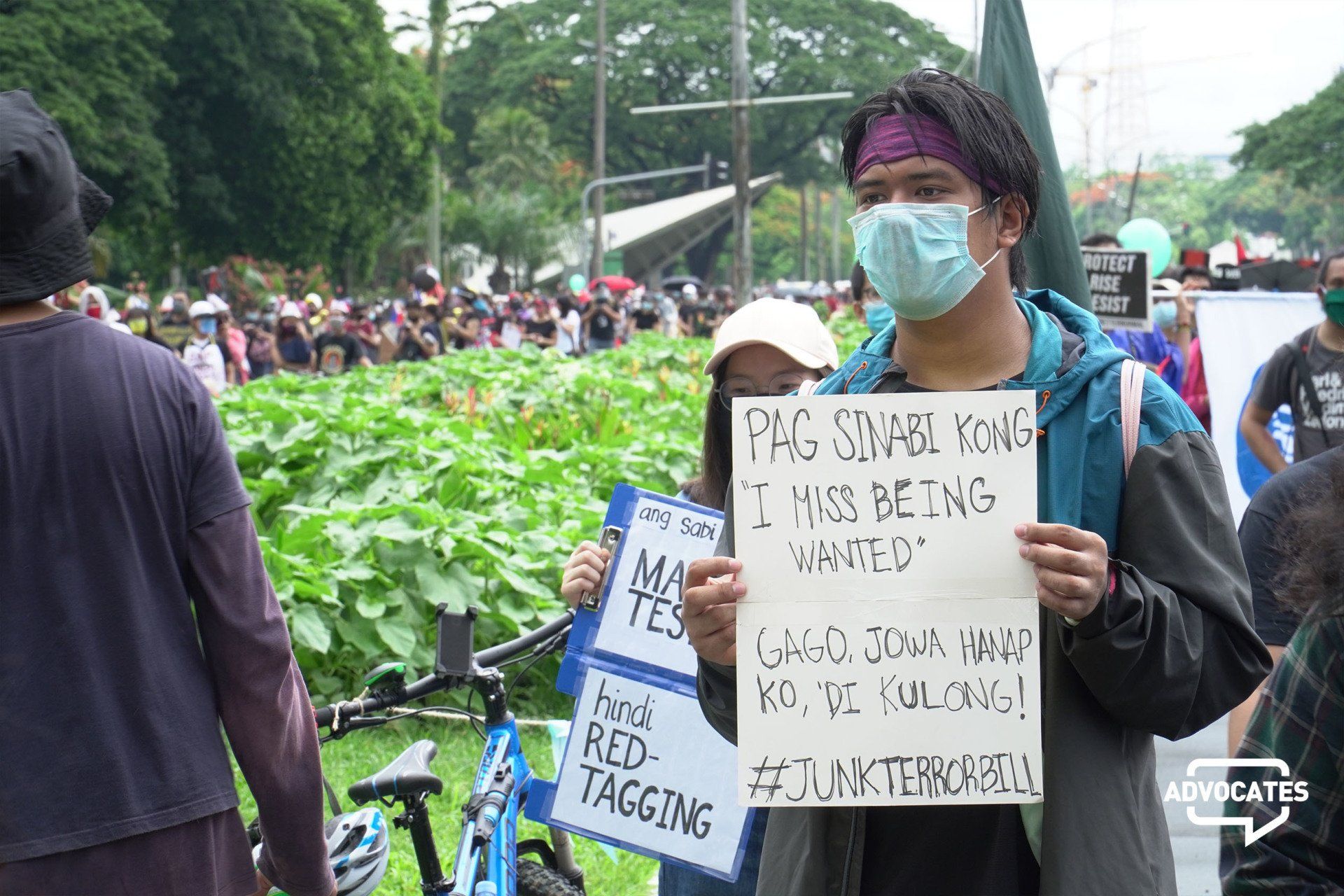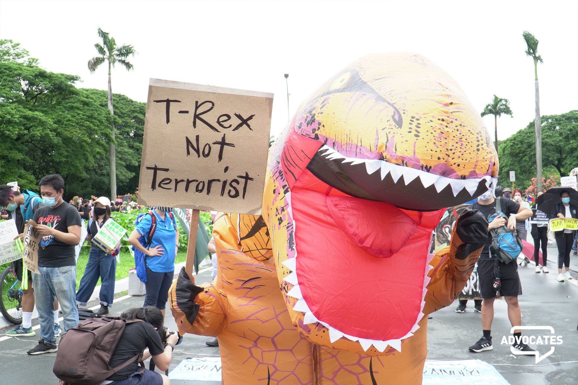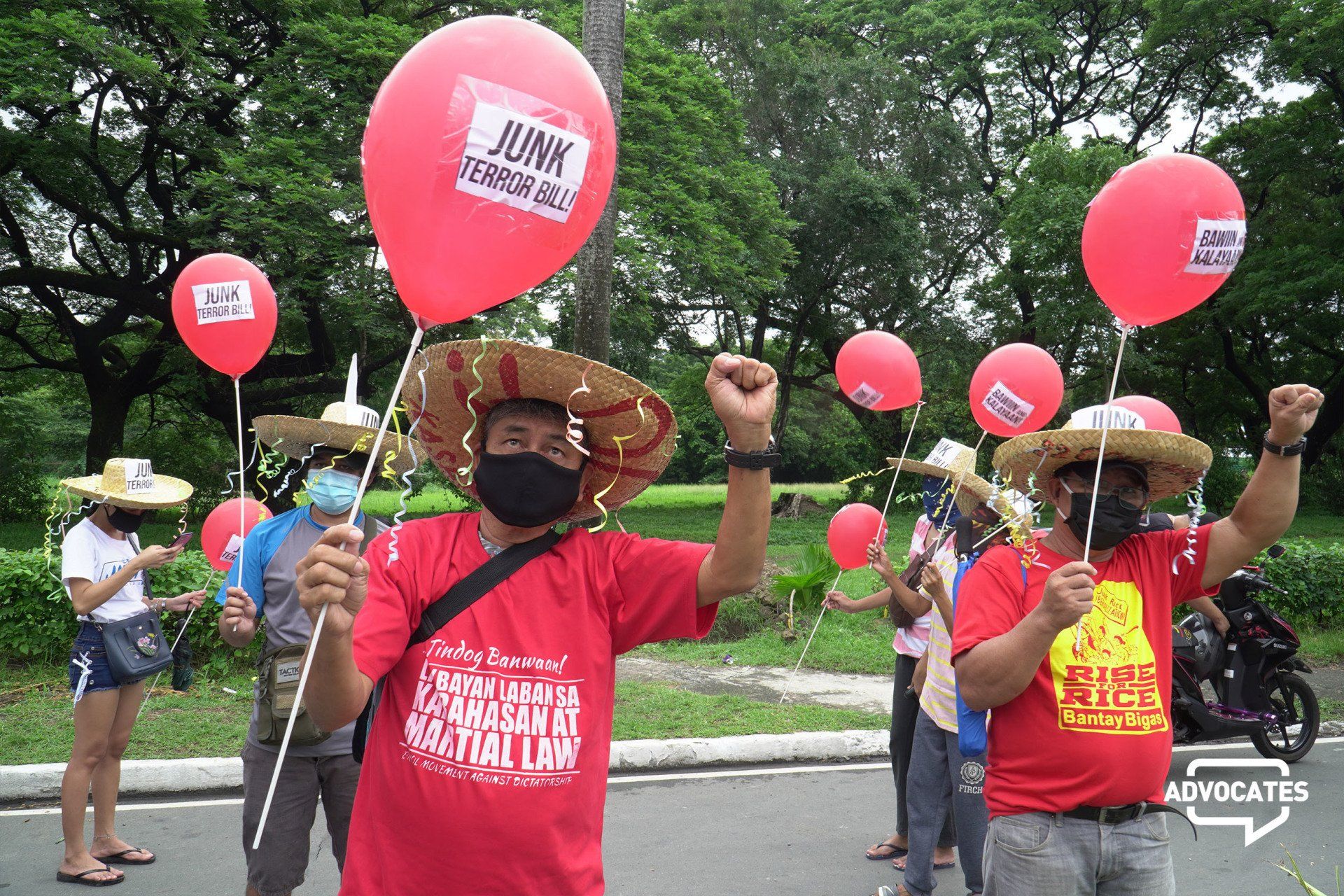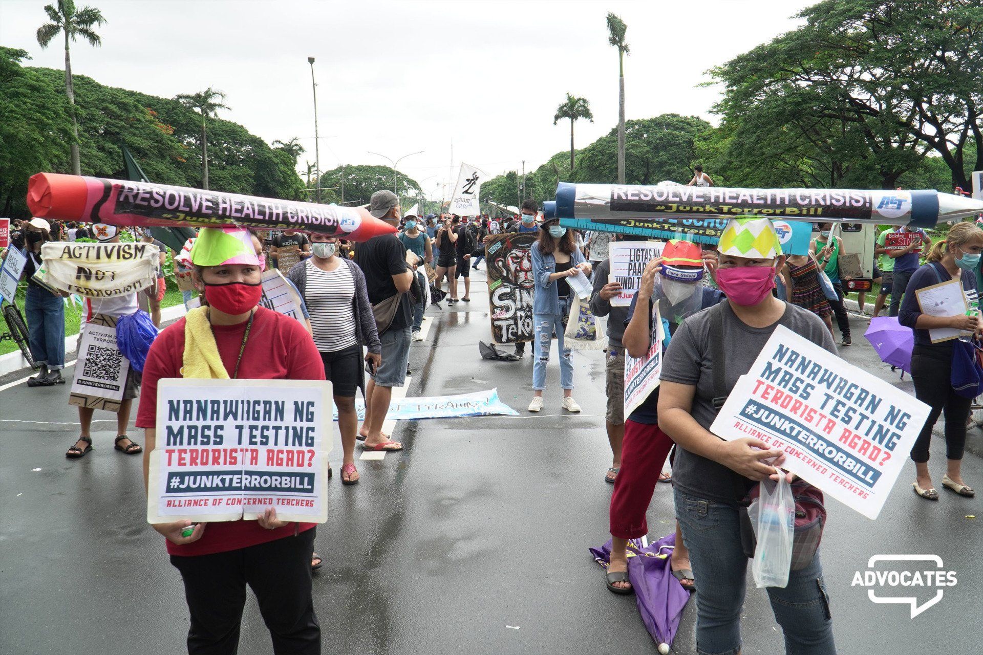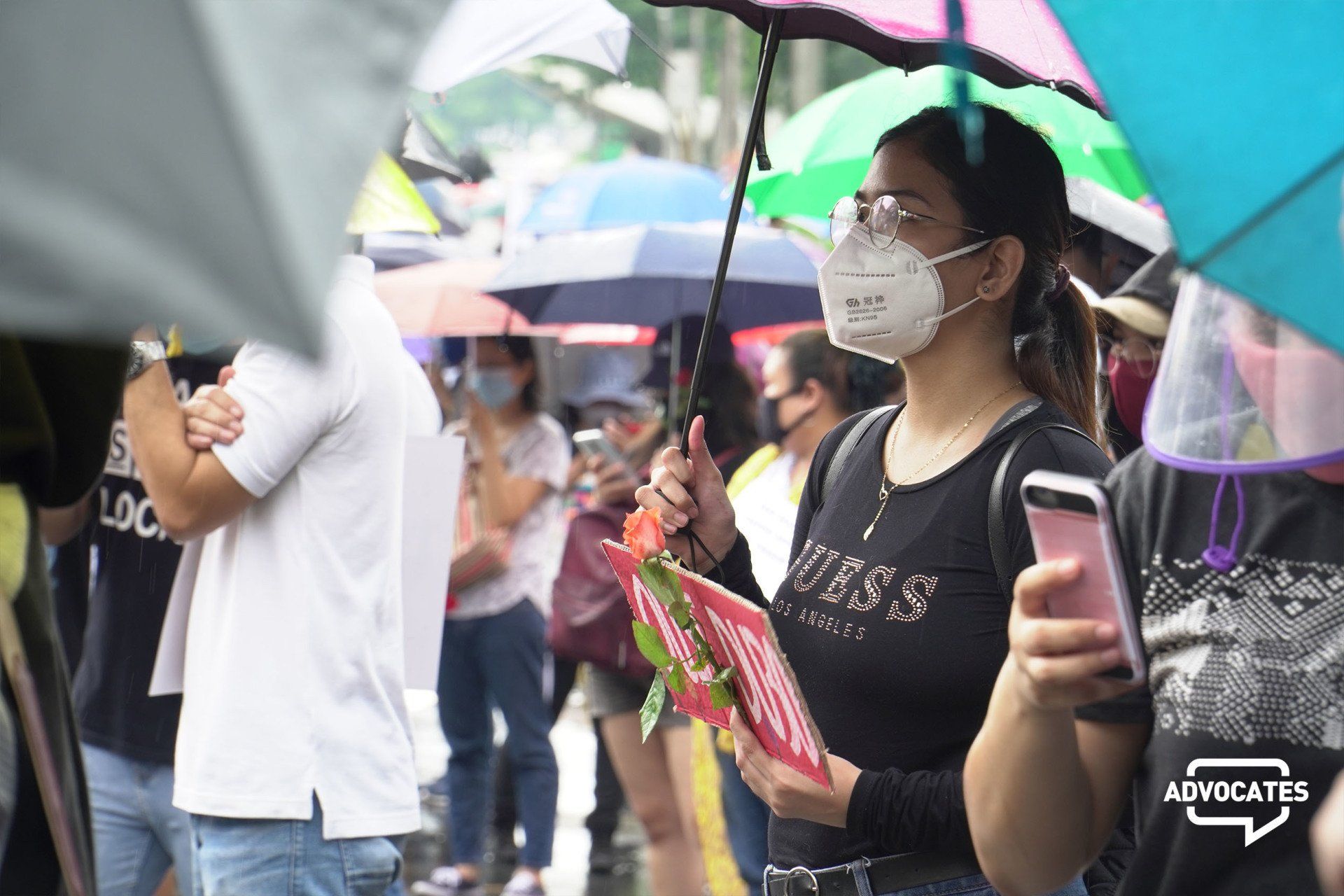 LOOK: The rain did not stop protesters from holding a “grand mañanita” rally at the UP Diliman campus on Independence Day to show their opposition to the controversial anti-terror bill.
