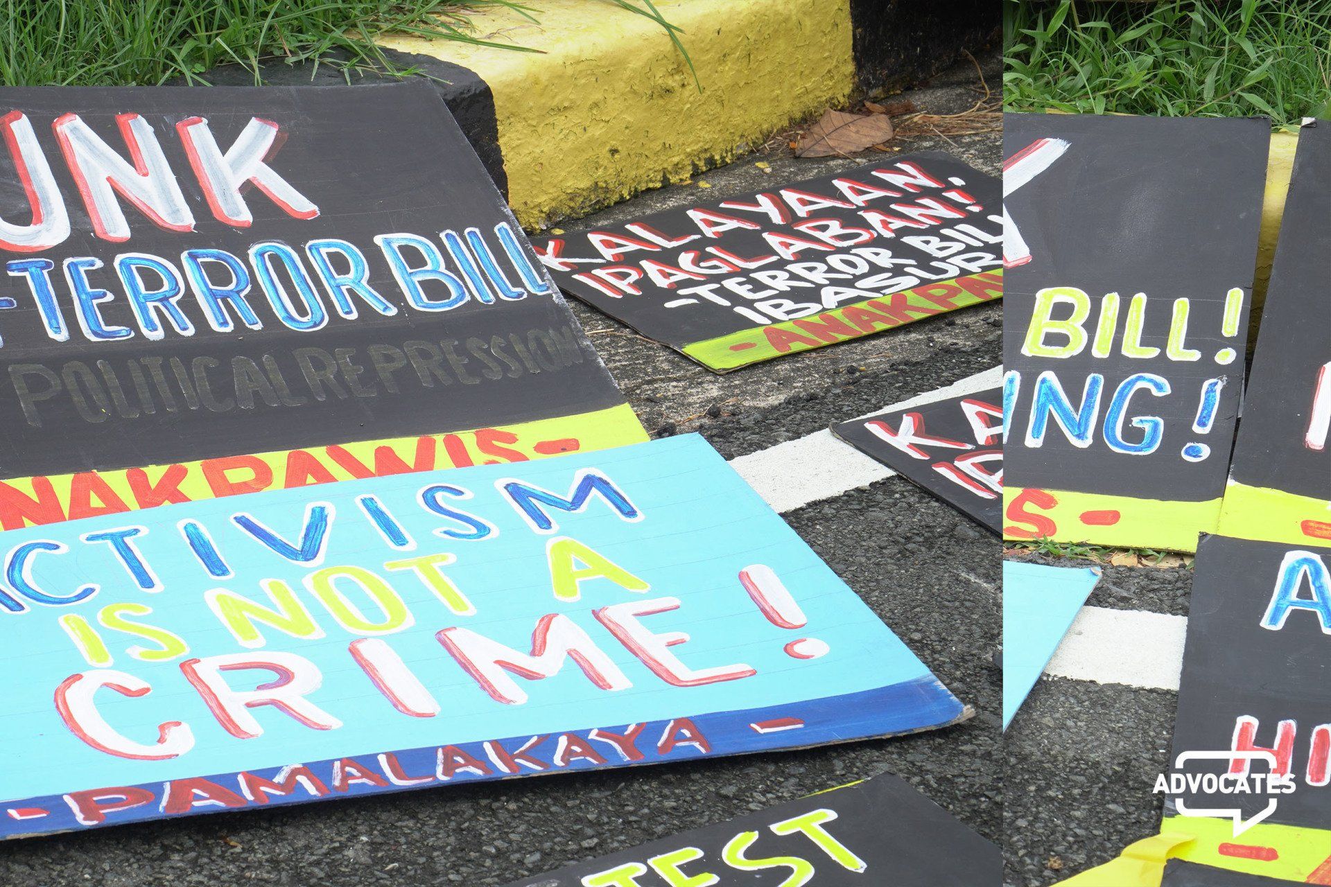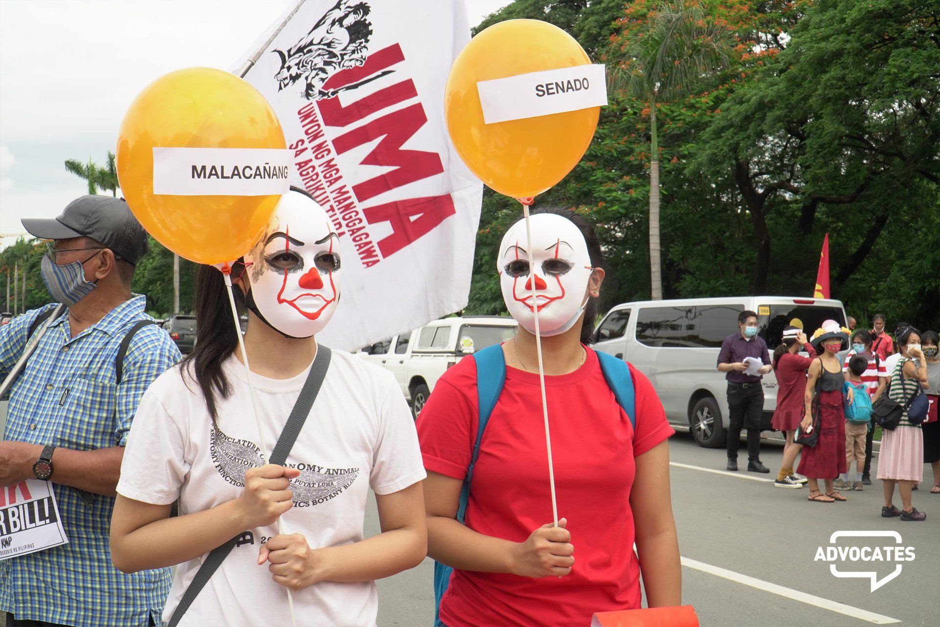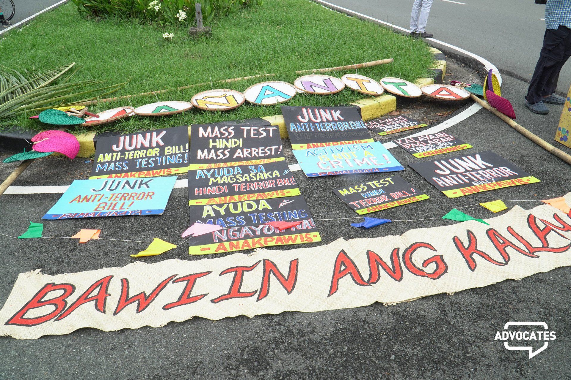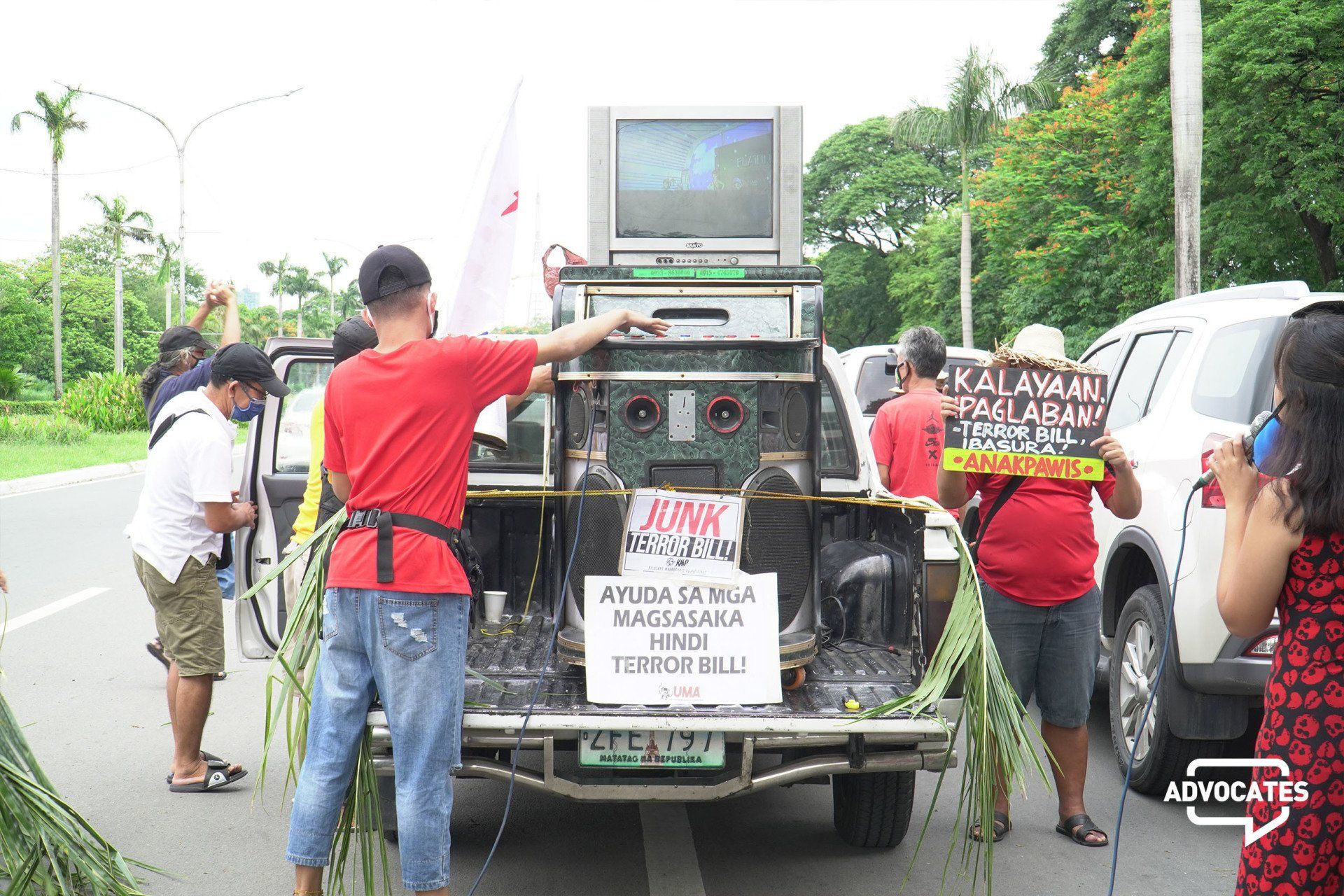 LOOK: The rain did not stop protesters from holding a “grand mañanita” rally at the UP Diliman campus on Independence Day to show their opposition to the controversial anti-terror bill.