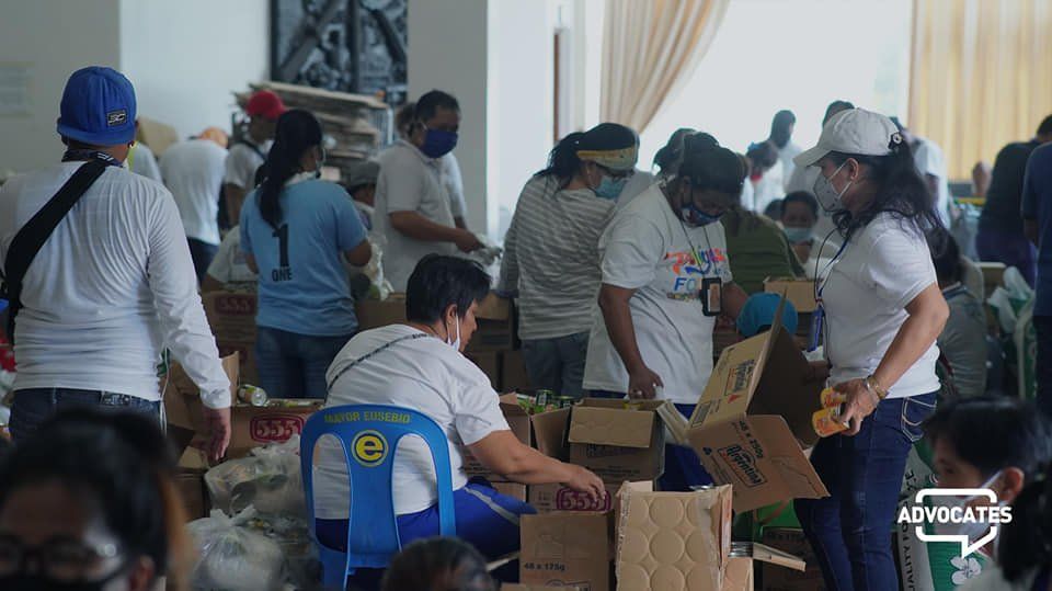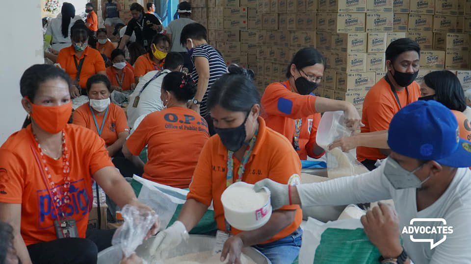 LOOK: Pasig City Hall employees working 24/7 to pack relief goods for distribution to the city’s residents