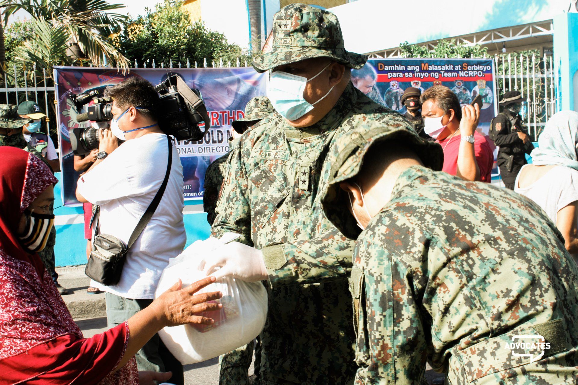 LOOK: PNP NCRPO Chief Maj. Gen. Debold Sinas leads the distribution of food packs and groceries to residents of Maharlika Village in Taguig City. The activity is part of the NCRPO's Adopt an Indigent Family (Kapwa Ko, Sagot Ko) Program.