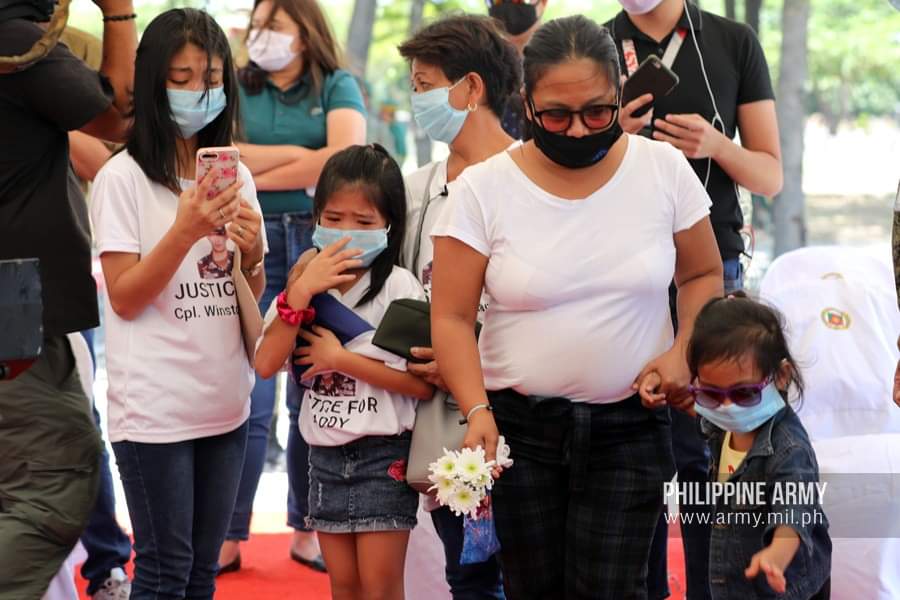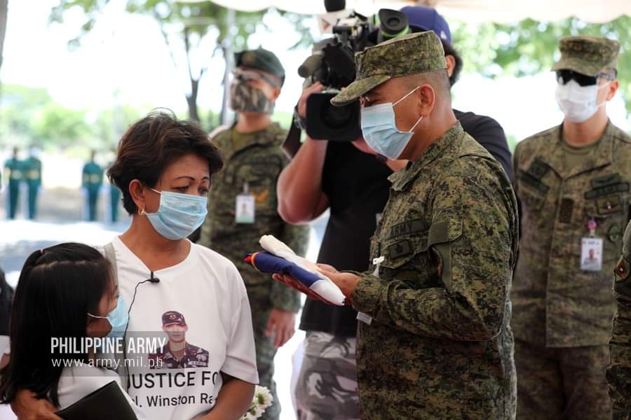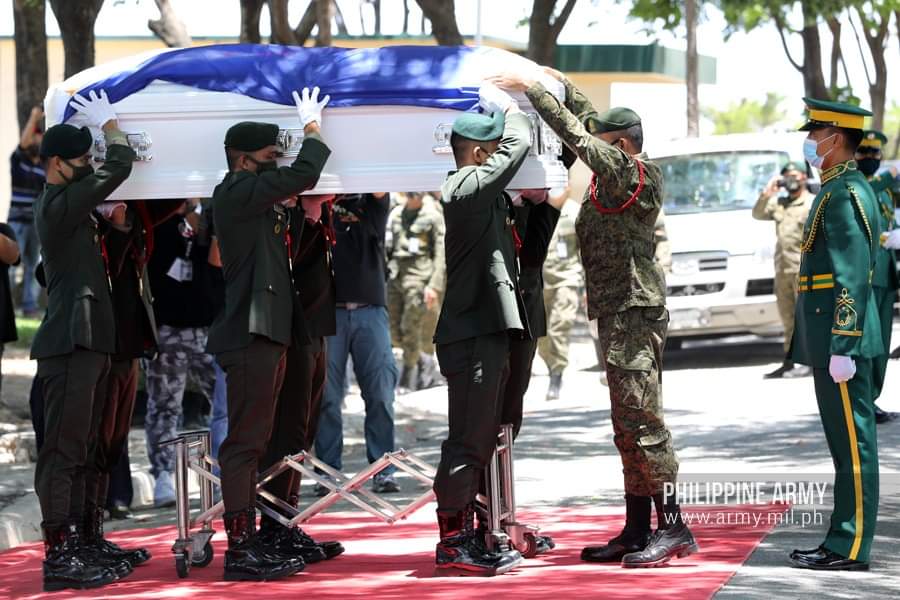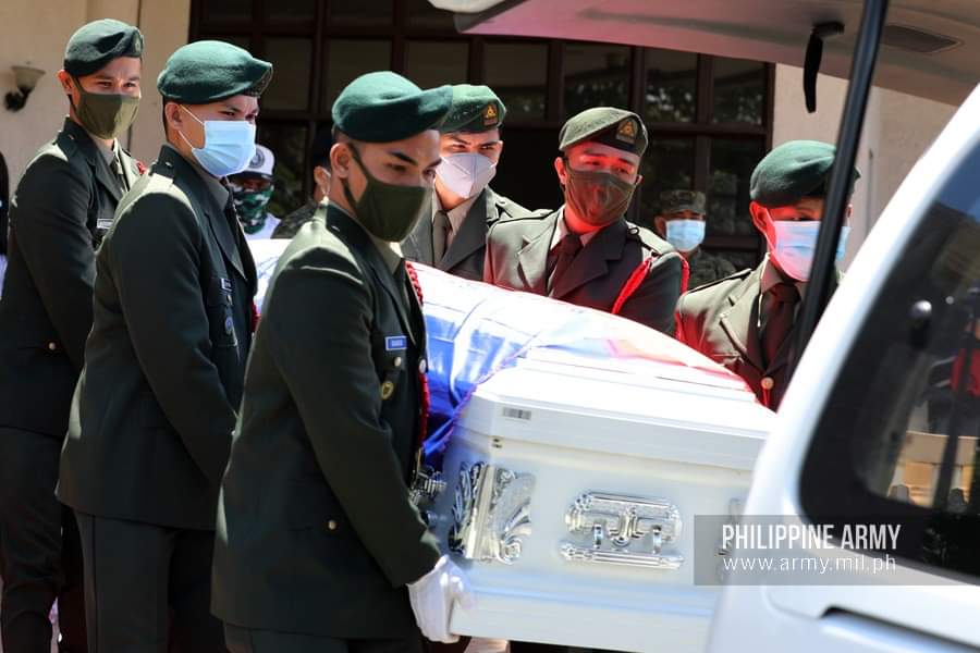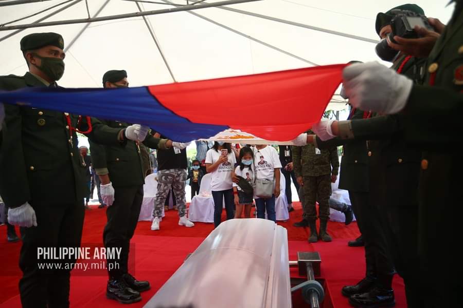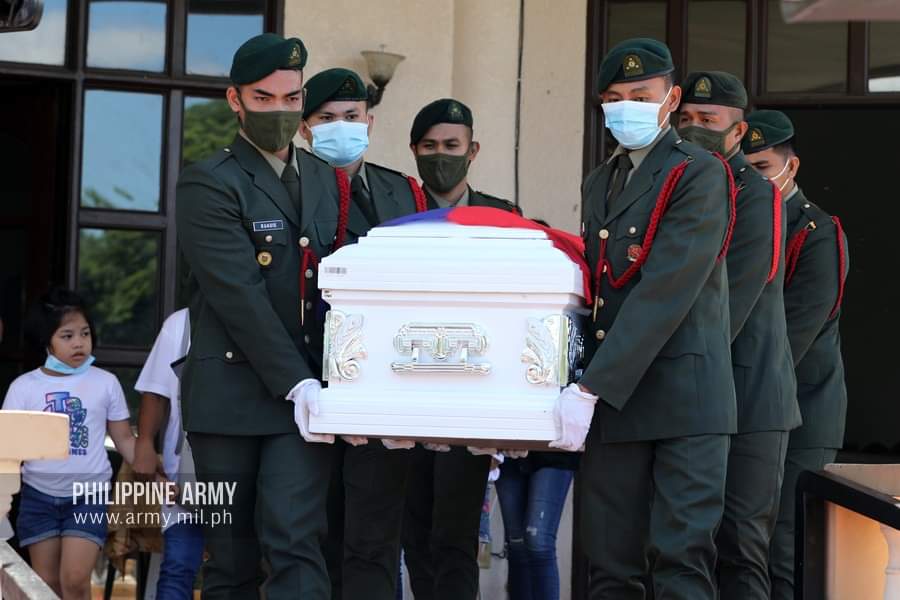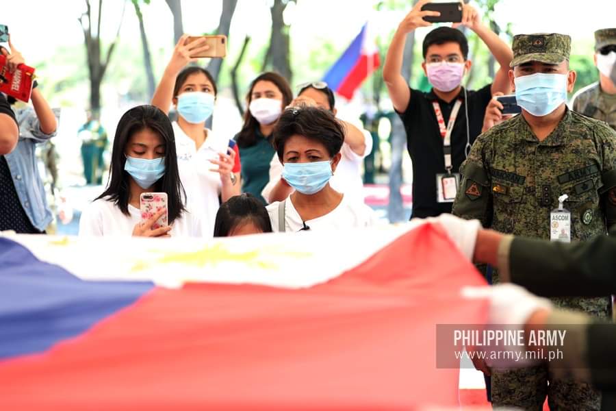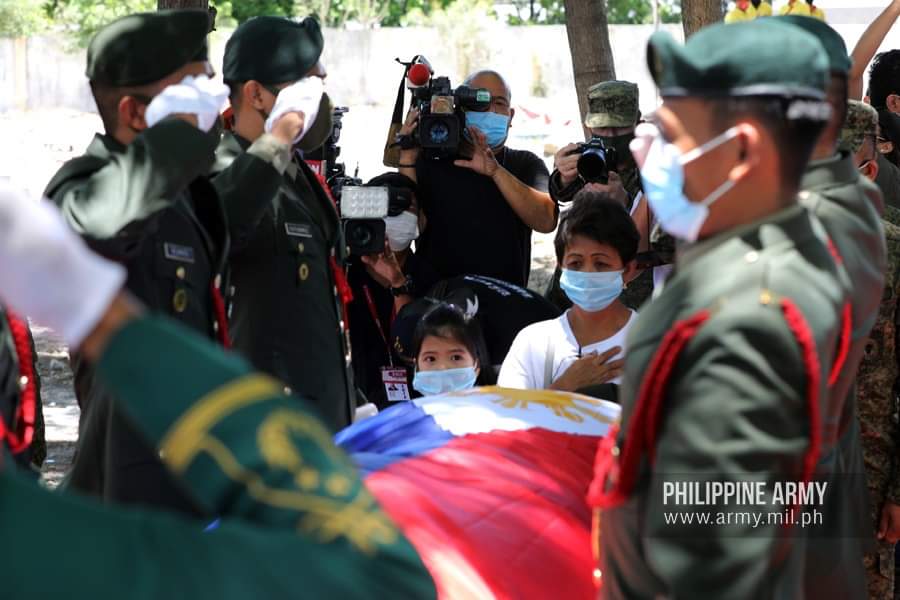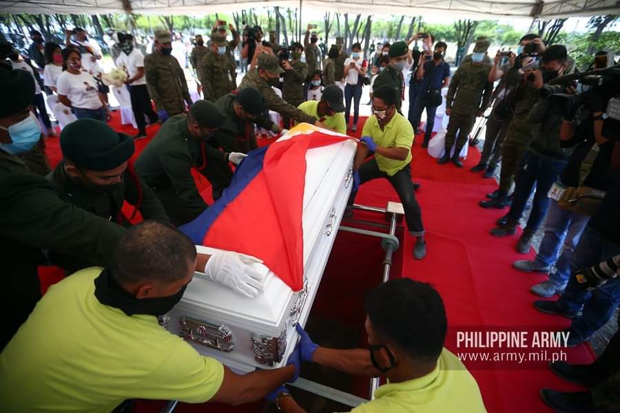 The Philippine Army renders full military honors for Cpl. Winston Ragos as he was laid to rest on Sunday, April 26, 2020 at the Libingan ng mga Bayani.