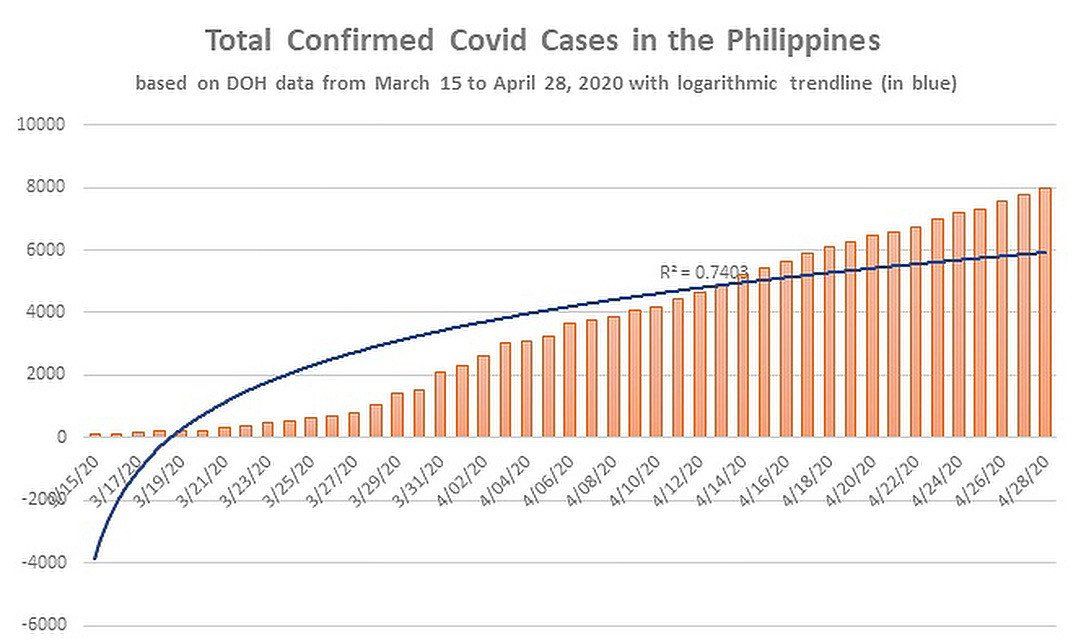 Sison based his analysis on his own charts using figures on Covid cases, recoveries, and deaths in the country from March 15 to April 28, 2020.
